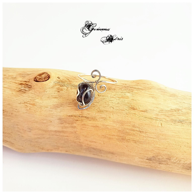 En son centre, un cabochon de black sunstone naturelle attire le regard par ses reflets profonds et contrastés. Pierre utilisée depuis l’Antiquité en bijouterie, la black sunstone est appréciée pour son caractère singulier et sa profondeur visuelle, rappelant les jeux de lumière sur une surface sombre.