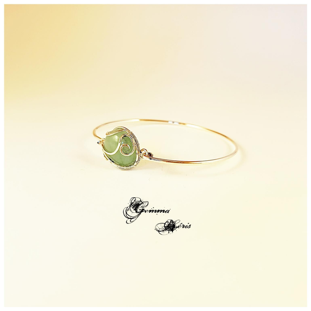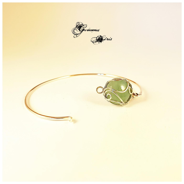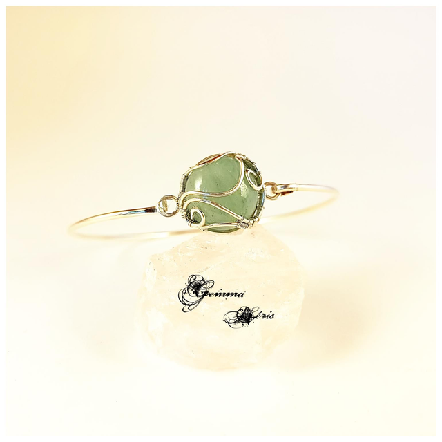 Ce bracelet jonc en argent, nommé Uranus, célèbre l'harmonie entre design épuré et inspiration céleste. En son centre, un cabochon rond d’aventurine verte capte la lumière avec douceur. Des fils d'argent viennent l'enlacer délicatement, serpentant sur la pierre pour la maintenir tout en sublimant ses reflets uniques.
